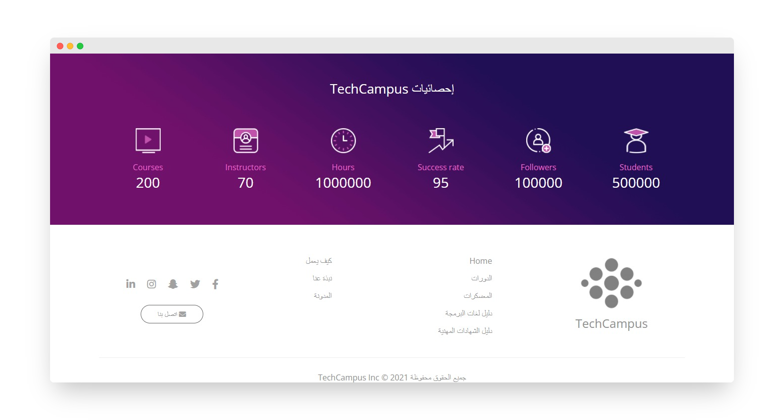 هوية وموقع وتطبيقات مركز TechCampus عمل ليس بالسهل، بحثنا طويلاً عن افضل الخيارات ولكن بالرغم من اطلاعنا على اعمال الكثير، تميزت اعمال شركة نبراس بإختلافها من ناحية الإتقان و الاهتمام بالتفاصيل الدقيقة والطابع الخاص لكل عميل. لم نشعر لا بالوقت ولا بجهد التفكير والافكار، نبراس تولت شعلة الإبداع عنا.